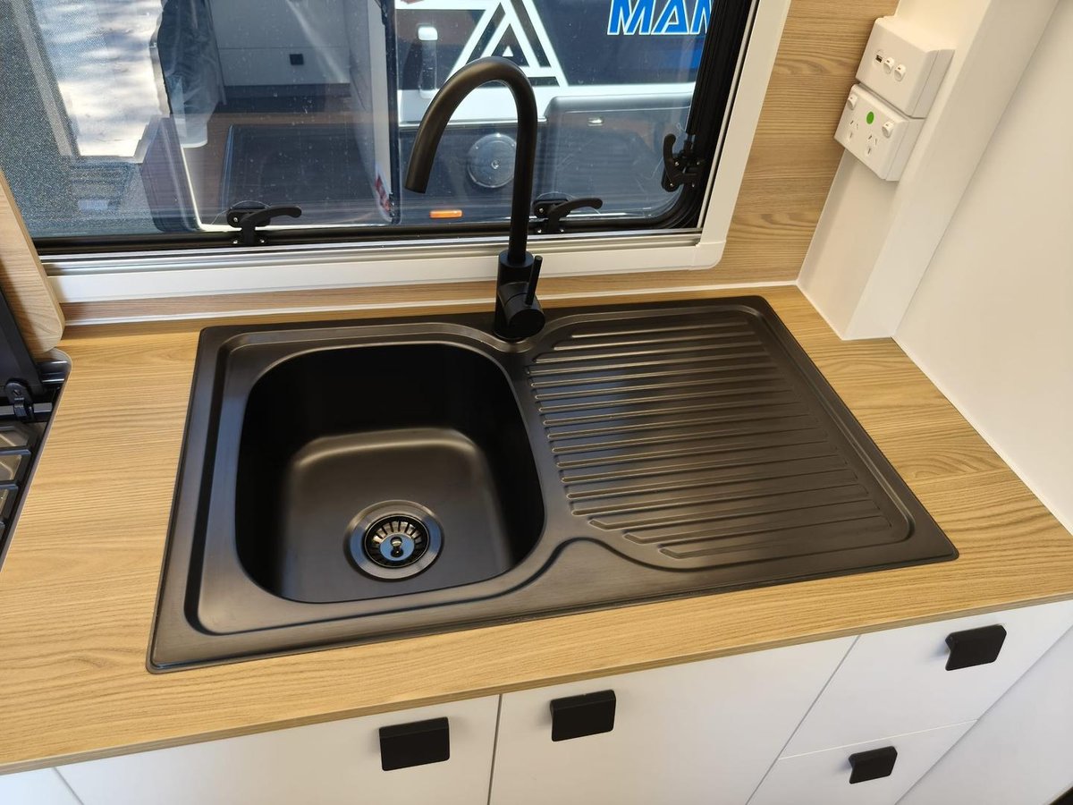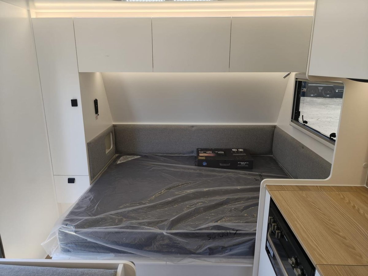 With a travel length of 6790mm and a tare weight of 1821kg, the Manta Ray 15 Escape is your ideal caravan, you don’t need a truck to tow it. Enjoy modern amenities like a queen innerspring mattress, a sleek kitchen with a recessed cooktop, and a 171L fridge/freezer. Stay entertained with a 24-inch smart TV, while the reverse cycle air conditioner keeps you comfortable year-round.